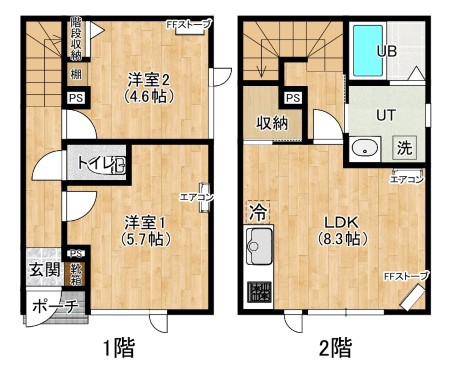 2LDK【8.3LDK×5.7洋×4.6洋】