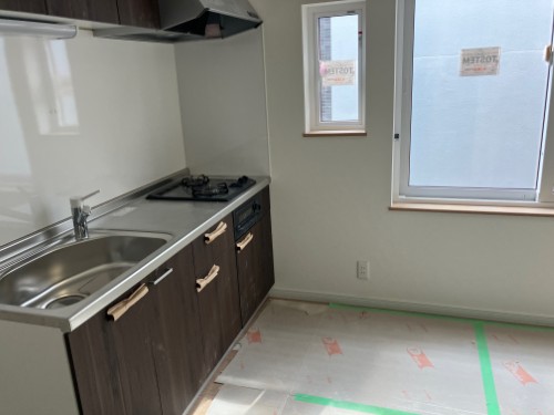 各室LEDダウンライト照明・居間トップライト採光・システムキッチン(2口コンロ)・ユニットバス(追い焚き機能付き)・シャワートイレ・独立洗面台・エアコン(2基)・灯油暖房・シューズボックス・インターネット無料(JCOM Wi-Fi)・カメラ付きインターホン・プロパンガス